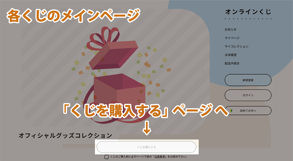 まだ会員登録されていない方は以下よりご登録後、くじをご購入ください。