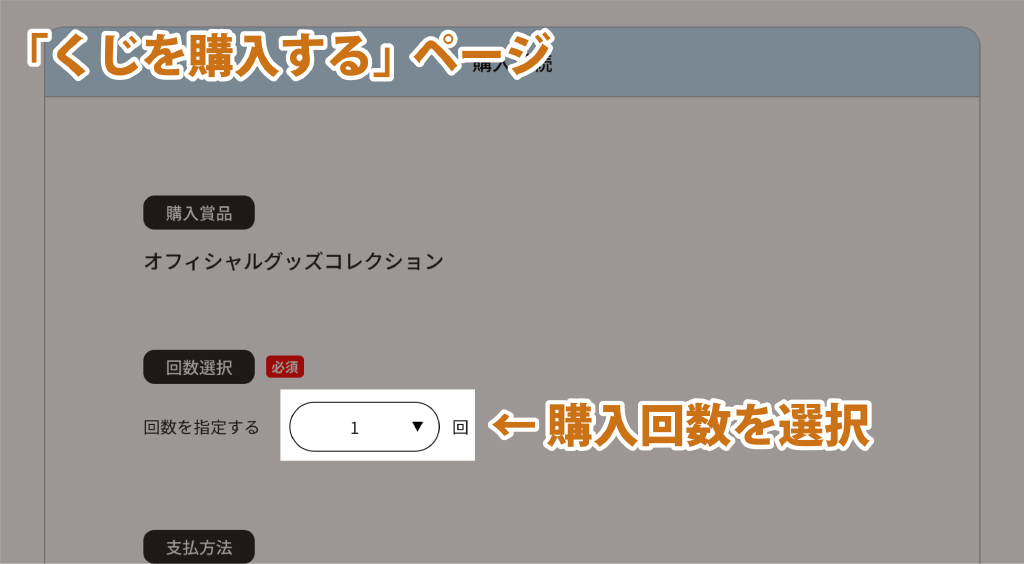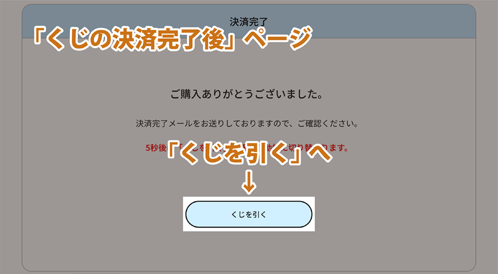 ⇒【続けてくじを購入する】から再度くじ購入手続きをお済ませいただき、くじ引くページへお進みください。