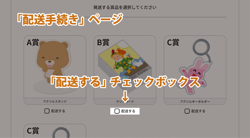 くじの賞品当選後は、お客様ご自身で発送手続きを行っていただく必要がございます。